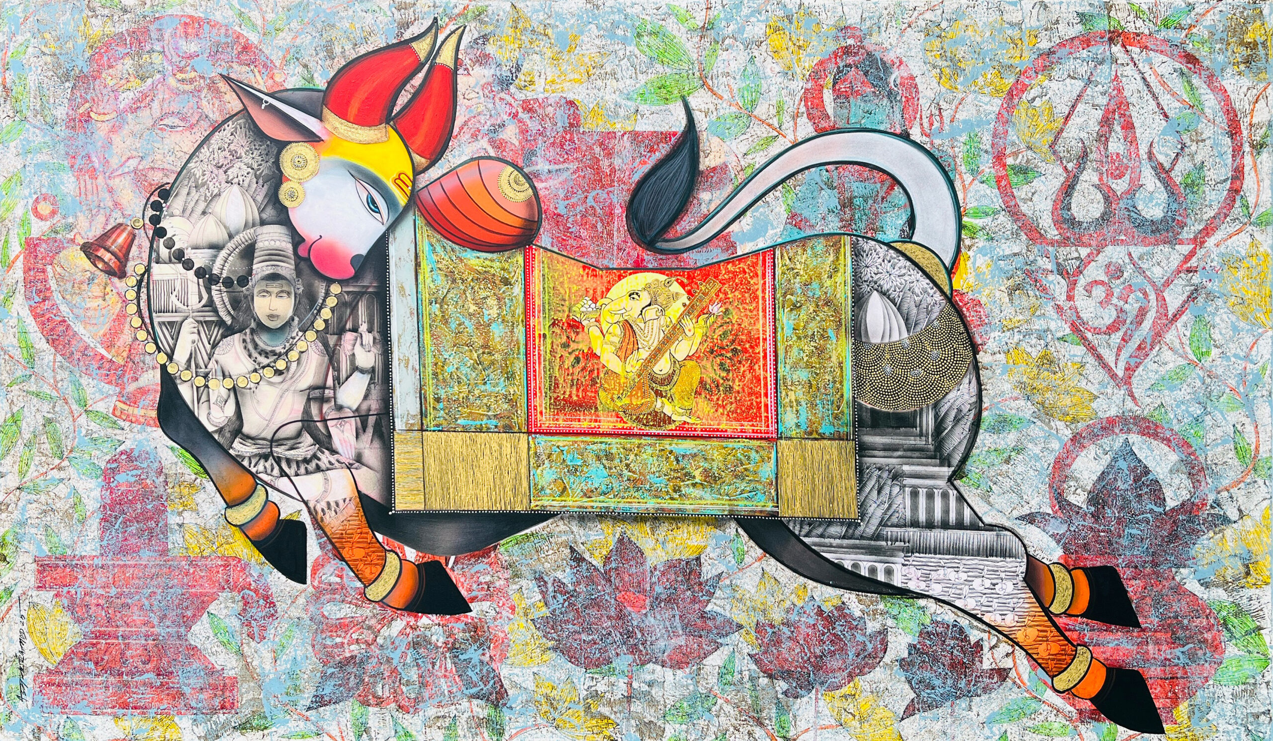Being an Indian I had a close observation of religions in India since my childhood. Thus my paintings reflects my observation mostly influenced by Indian culture and traditions. My aim is to keep all significant figures of Indian mythology alive today through my painting. My paintings narrate small stories from Hindu mythology to its onlookers, the stories are generally painted in animals figures such as bull, cow, elephant which played significant role in bygone era